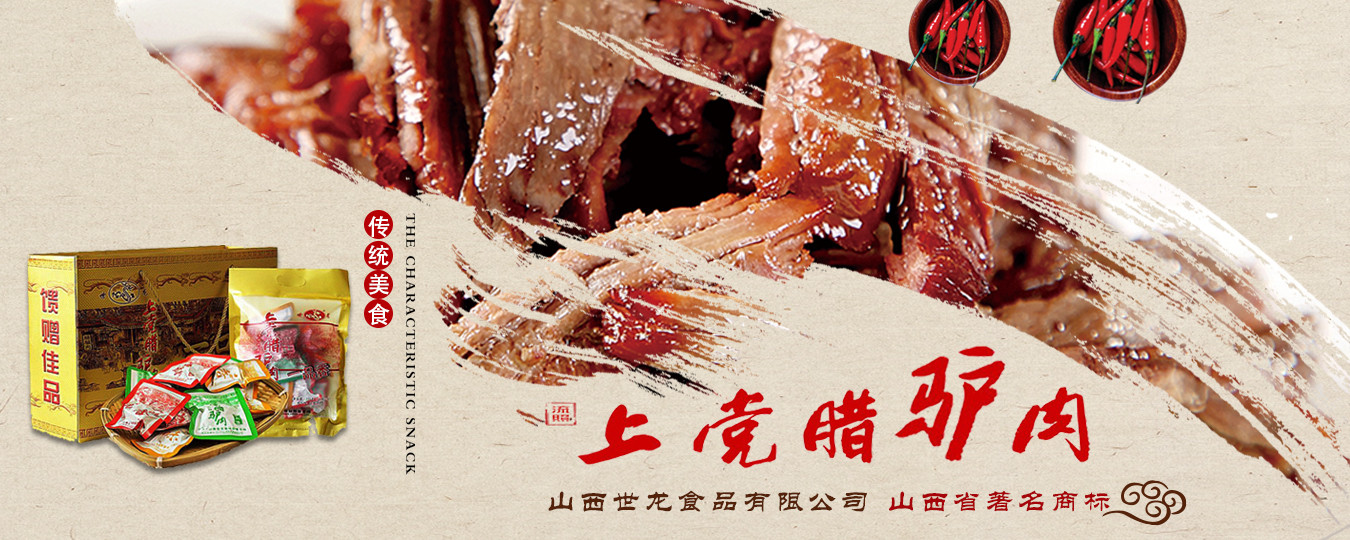山西世龍食品有限公司是以“世龍”牌上黨臘驢肉系列產(chǎn)品為主導,集科研開發(fā)、良種繁育、基地建設(shè)、生產(chǎn)加工、市場營銷于一體的農(nóng)業(yè)產(chǎn)業(yè)化國家重點龍頭企業(yè)、全國農(nóng)業(yè)標準化示范區(qū)、全國食品行業(yè)優(yōu)秀龍頭企業(yè)、山西省農(nóng)業(yè)產(chǎn)業(yè)化重點龍頭企業(yè)、山西省農(nóng)產(chǎn)品加工“513”工程單位、山西省帶動貧困地區(qū)基地建設(shè)重點龍頭企業(yè)、山西省民營畜牧業(yè)示范基地、山西省質(zhì)量信譽AAA級單位、山西省重合同守信用單位、山西省消費者協(xié)會誠信單位、山西省民營科技企業(yè)。